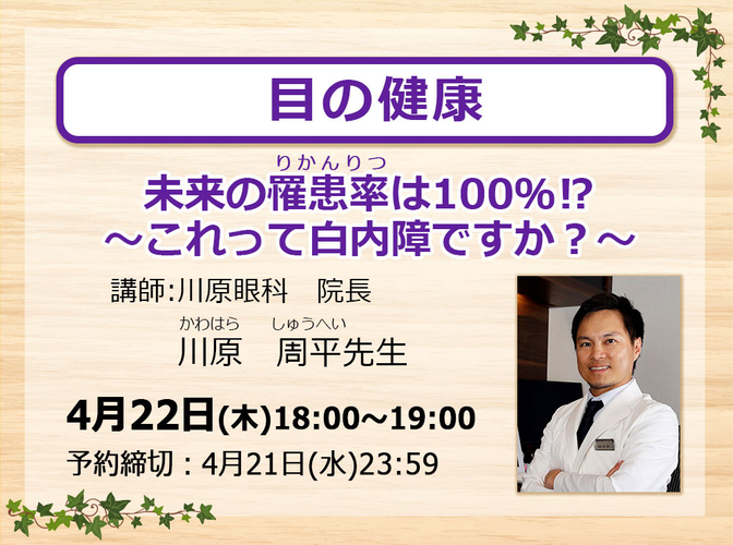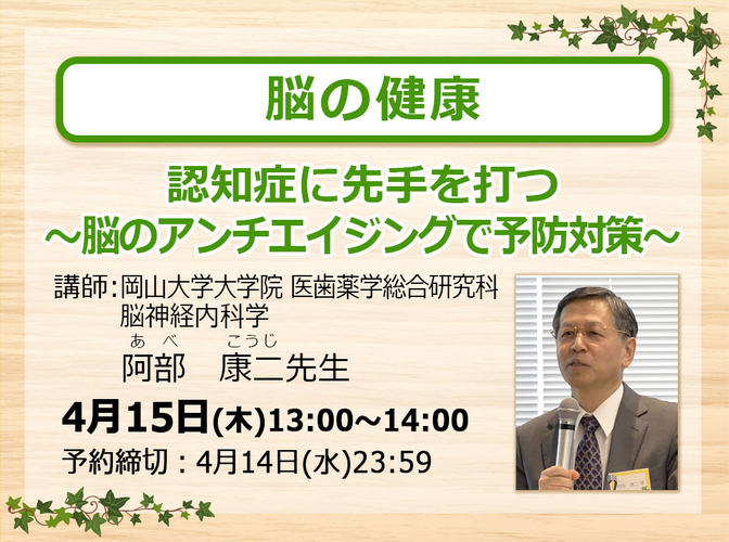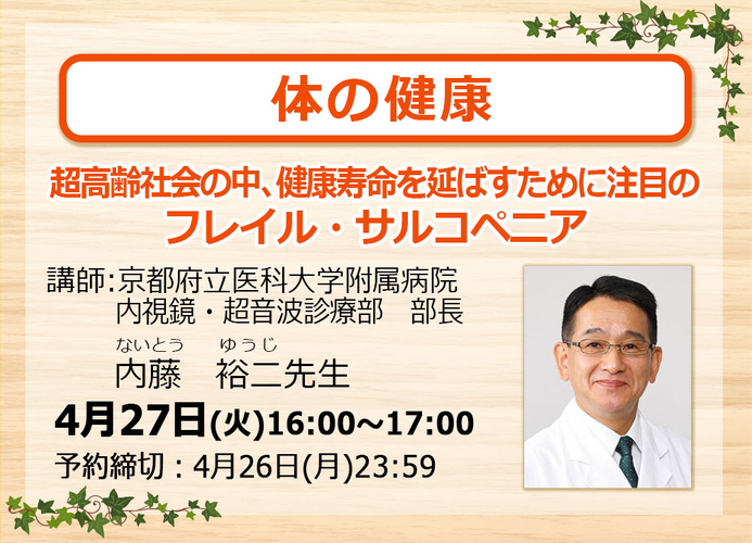 4月のオンライン講座は、現在発売中の健康雑誌『若々』に記事掲載されている専門家に登場いただきます。