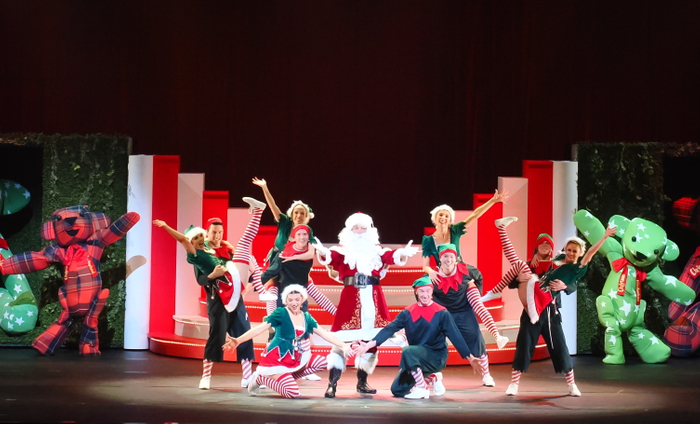 幕が開くと、結晶がキラキラ輝く雪の世界。真っ白な衣裳に身を包んだ6人のシンガーとダンサーたちが〈レット・イット・スノー〉〈ジングル・ベル〉〈赤鼻のトナカイ〉などを披露、一気にクリスマス気分に突入だ!ステージにそびえ立つ巨大なツリーの前での長〜いラインダンスは、ニューヨークのラジオシティで毎年上演される『スペクタキュラー・クリスマス』を彷彿させる。サンタクロースも登場し、パワフルに歌って踊って大忙し。そのうち場面はサンタのおもちゃ工場へ。おもちゃがどんどん作られ、プレゼントが準備される様子は、子供たちのクリスマスへの期待を一層盛り上げるに違いない。くまのぬいぐるみがイキイキとステップを踏む、そのキュートなこと!