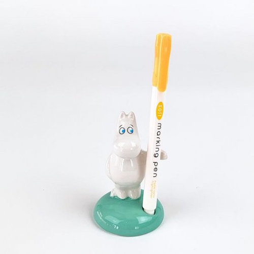 磁器製でツヤ感のある、ムーミンのペンスタンドです。片手を横に広げたポーズで、いつでもペンをホールドするスタンバイ中♪台座もナチュラルなグリーンで、お部屋やデスクにも馴染みます。