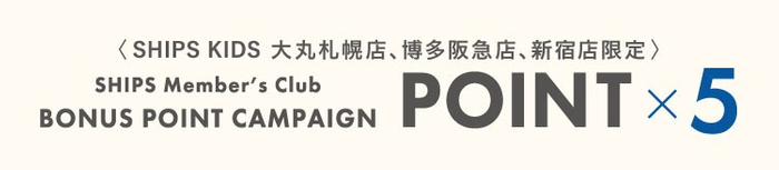 3店舗限定で、SHIPS Member’s Clubのポイントが通常の5倍となるボーナスポイントキャンペーンを開催いたします。ぜひこの機会をお見逃しなく!