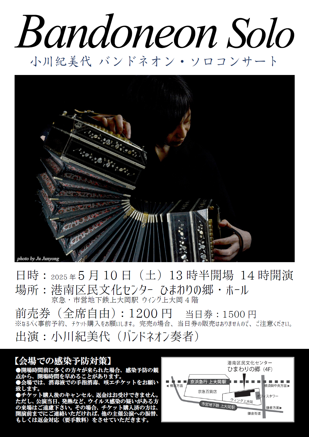 世界的にも評価の高い女性バンドネオン奏者、小川紀美代による2025年春のフランスツアー帰国直後のソロコンサートを上大岡で開催。