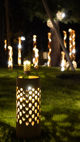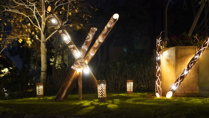 展示では、徳島県海陽町を拠点に活躍する竹灯り作家・桧垣健さんとフローレンスさんご夫妻が手掛けた作品が、舞洲ガーデン内に登場します。細やかな模様が施された竹の灯りが作り出す光と影の美しいコントラストが、訪れる人々を幻想的な世界へと誘います。