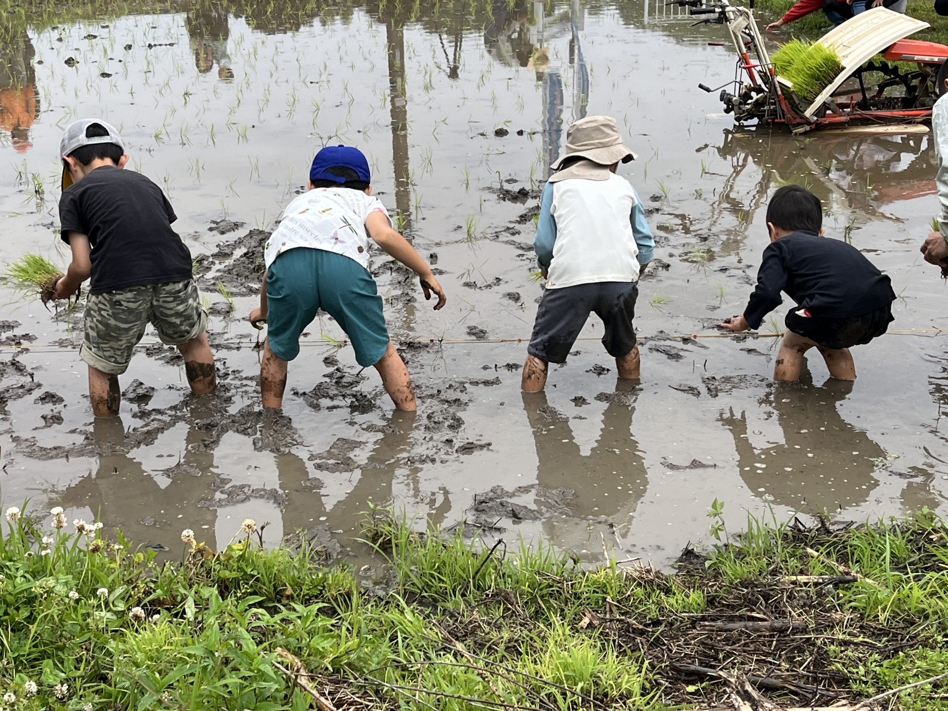 田植え体験は、単なる農作業体験ではなく「食育」の観点から、子どもたちが土に触れ、稲の苗を実際に植える事で、命を育むことの尊さを学ぶ、かけがえのない教育の場として、子どもたちに米づくりの大切さや自然とのつながりを体感してもらう事を目的としております。