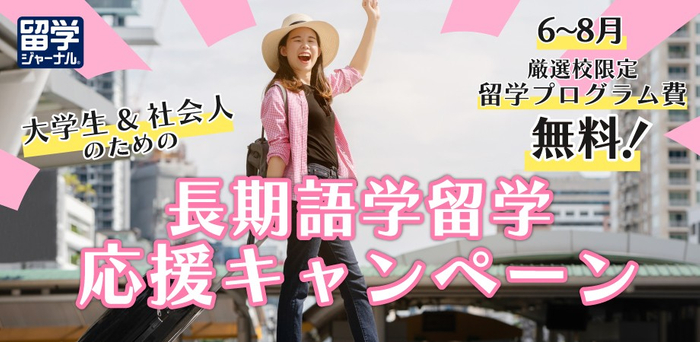 株式会社留学ジャーナル (所在地:東京都新宿区、代表:塚田 俊文)は、大学生・社会人を対象にした、9週間以上の語学留学プログラムのお申込みで プログラム費が無料になる「留学応援キャンペーン」を実施します。