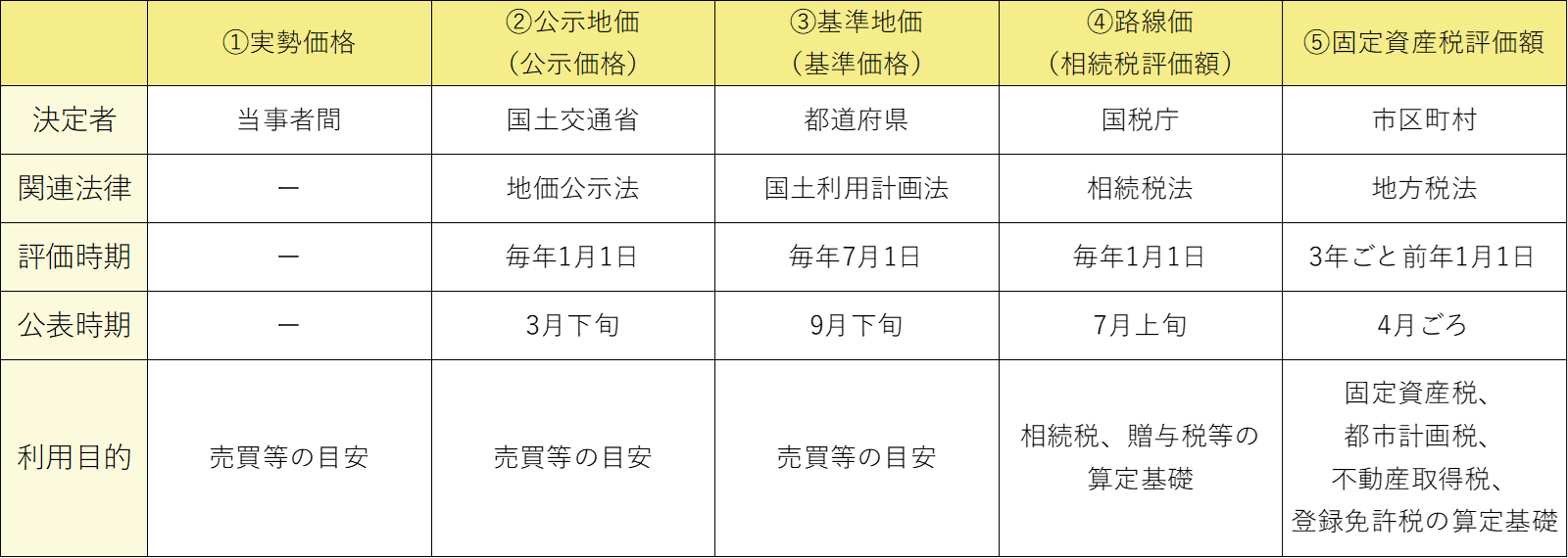 一つの土地に5つの異なる価格が存在するのはなぜ?違いは?