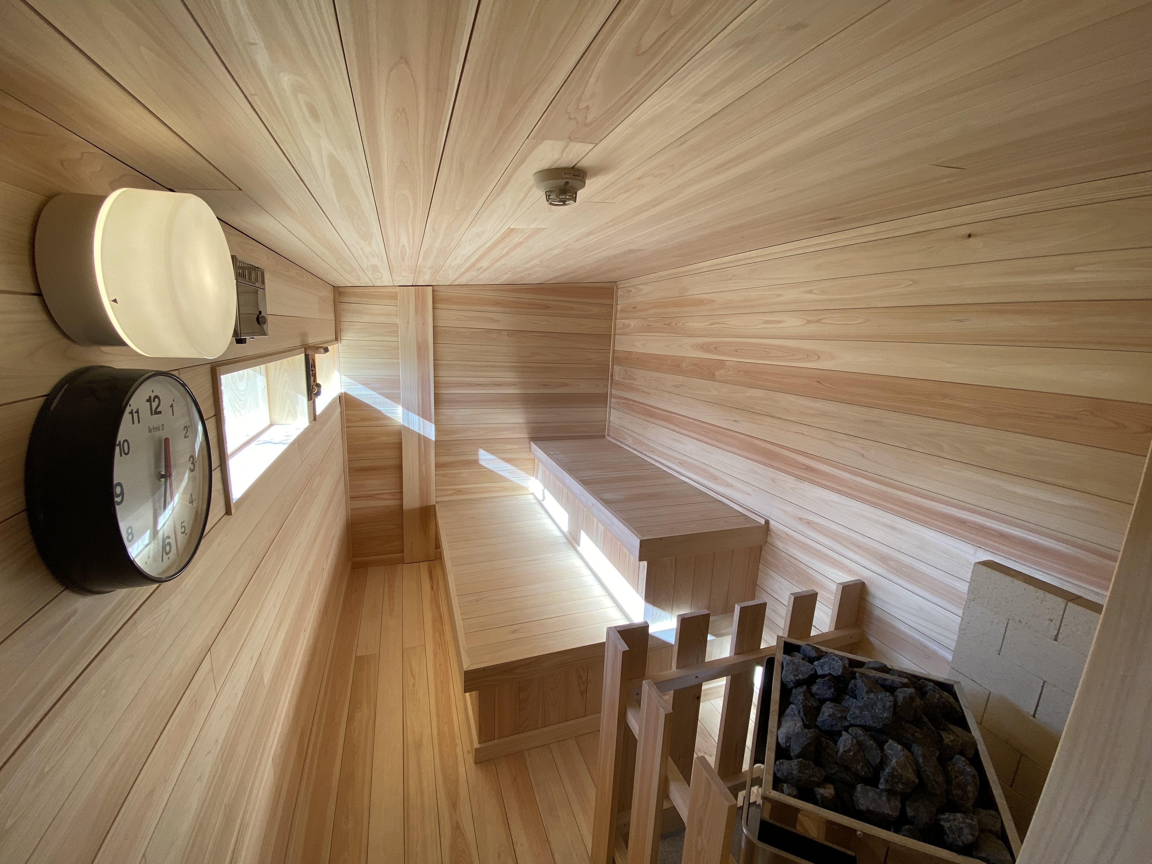 リニューアルしたサウナは「ヒノキ」を使用したサウナ小屋。フレッシュな香りと木のパワーで、心と体を満たします。セルフロウリュもお楽しみいただけるフィンランド式のサウナ施設と水温15度、深さ120cmのキンと冷えた水風呂、そして、男性はテラスでの外気浴、女性は内気浴室で、しっかりととのって、日々の疲れをリフレッシュしてみてはいかがでしょうか。