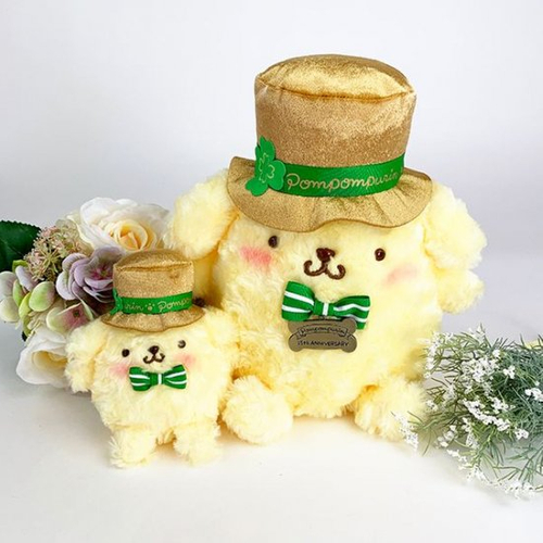 ポムポムプリンのレア感のあるぬいぐるみをゲットして、25周年をお祝いしませんか?どちらのサイズもキュートで、2つ並べてもかわいいですよ。