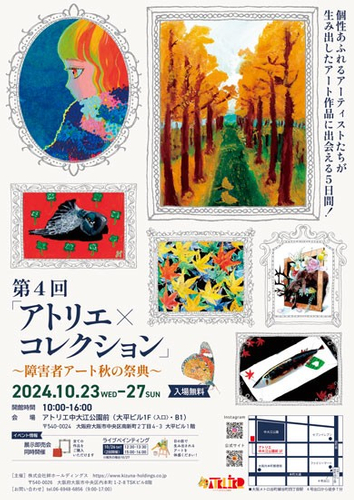 株式会社絆ホールディングス(本社:大阪市中央区、代表:吉田 昭元)が運営するアトリエ中大江公園前では、2024年10月23日(水)から27日(日)の5日間にわたり、第4回目となる障害者アート展覧会を開催します。