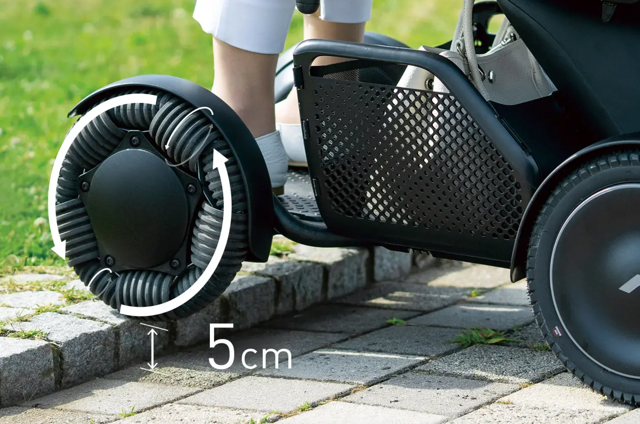 「WHILL Model C2」は高いデザイン性と、5cm の段差乗り越え、回転半径 76cm の小回り能力、リアサスペンションを採用した滑らかな乗り心地などを特長とした、高齢者の安全な外出をサポートする近距離用のモビリティです。 WHILLは5cmの段差乗り越えや小回りの高さ、悪路も走行できる高い走破性と高いデザイン性を備えております。分解が可能な為、クルマのトランクにも載せることが出来て持ち運びも便利です。