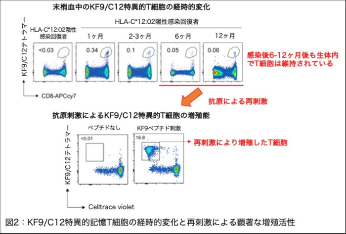 また、KF9/C12特異的T細胞は感染1年後も記憶T細胞として生体内に維持されており、再感染時に顕著な増殖活性を有することがわかりました(図2)。