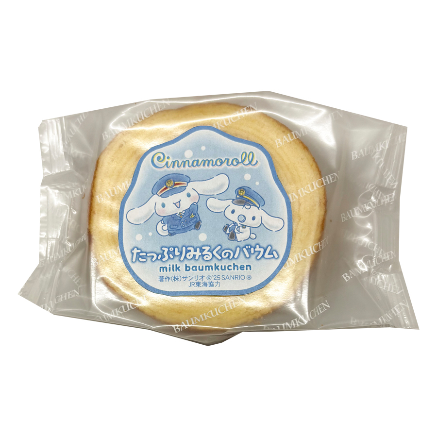 シナモロールのおともだち”みるく”をイメージした、たっぷりのミルクを使って焼き上げたやさしい味わいのバウムクーヘン♪