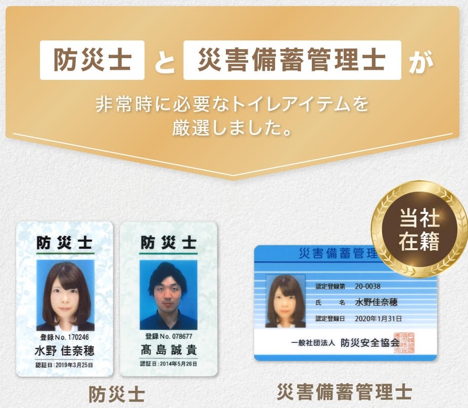 本製品は、防災士と災害備蓄管理士が共同監修した防災用トイレキットです。
