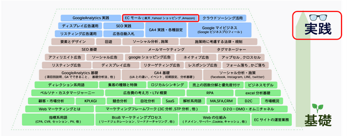 デジタルマーケティングを網羅する300の動画授業では、未経験者向けの基礎や概念を学ぶものから、現場担当が実践で活用できるようなノウハウや手法、ケーススタディまで幅広く網羅しています。
