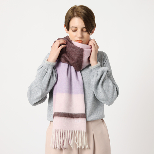 フルラ (FURLA) カラーブロックストール ロゴ刺繍 洗えるウール