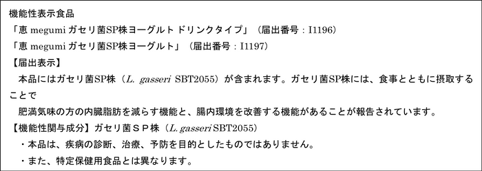 2024年10月、「恵 megumi ガセリ菌SP株」シリーズは、従来の「肥満気味の方の内臓脂肪を減らすのを助ける」機能に、「腸内環境を改善する」機能を新たに追加してパワーアップしました。おかげさまで、販売は好調に推移しています。