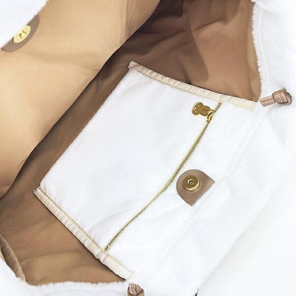 こちらは、ミッフィー ファートートバッグ (ホワイト)です。愛らしいミッフィーのワンポイントにふわふわの手触りが気持ちいいファー素材が見た目でも触り心地でも癒されます。