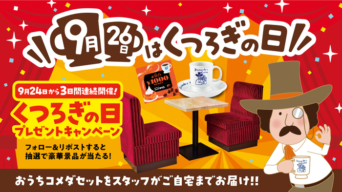 全国にフルサービス型の喫茶店を展開する株式会社コメダ [本社:愛知県 代表取締役社長:甘利祐一 グループ店舗数:1,130店舗(2025年8月末時点)]は、9月26日の「“くつろぎ”の日」に関するキャンペーンを実施します。