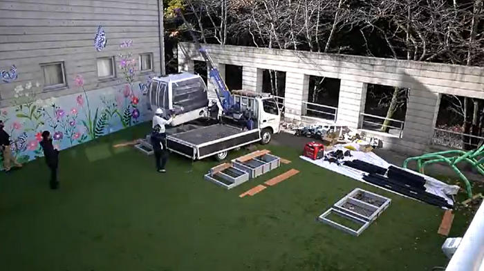 「テレワークゴンドラ」の改装と設置の様子