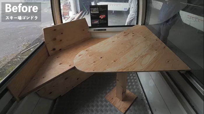 作品内容:「アルツ磐梯」のスキー場で実際に使われていたゴンドラを改装し、リゾナーレ八ヶ岳で「テレワークゴンドラ」として誕生した様子を、ビフォーアフターの写真や時間の経過とともに紹介しています。