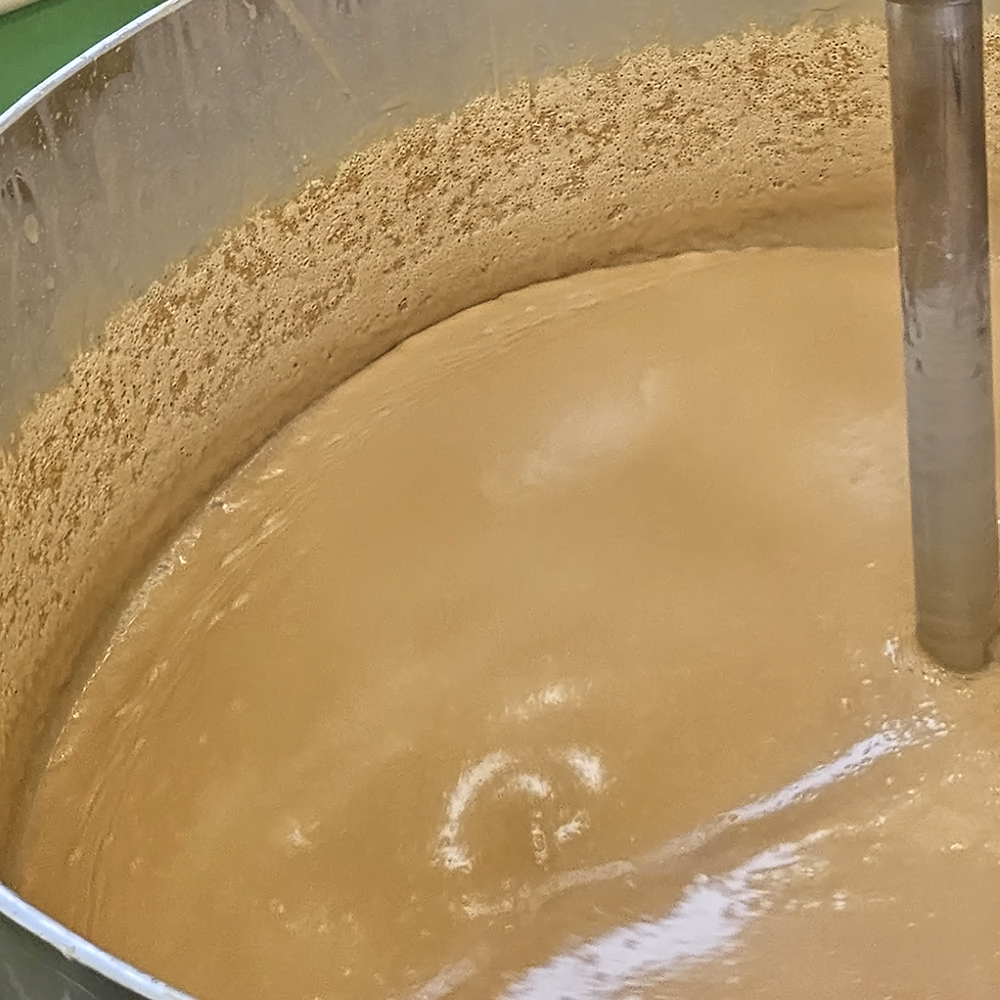 ミルクの甘さと繊細な和紅茶の香りを最大限にいかすため、ティーパックに和紅茶を入れ、製造直前に丁寧にお茶を浸出。紅茶の苦味は出さずに香気成分を浸出するため、沸騰したお湯に茶葉を入れ、静かに置いて5分程度蒸らします。クリーミーな硬さになるまでゆっくり時間をかけて濃縮しました。