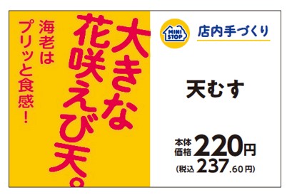 ミニストップは、店内で炊いたご飯にえび天をのせた「手づくりおにぎり 天むす」と、おかずやおつまみにちょうどいいお惣菜「ねぎ塩チキン」を、8月9日(金)より国内のミニストップ店舗にて発売します。エビのプリッとした食感と、ふんわりとした天ぷらの衣と、ご飯の相性が抜群な手づくりおにぎり天むすと、たっぷりのねぎ塩ソースが食欲をそそる1品、ねぎ塩チキンをお楽しみください。(一部取り扱いの無い店舗がございます。一部店舗により価格が異なります。)