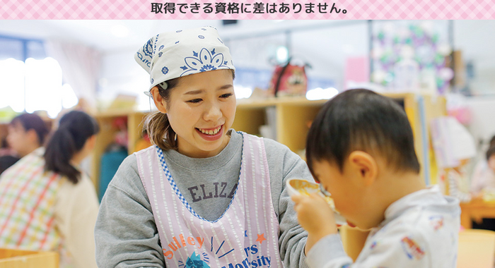 本校は2年課程で、卒業と同時に「保育士・幼稚園教諭二種※の取得が可能です。