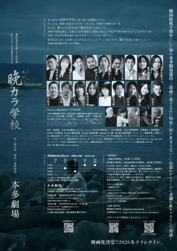 劇団第十五回目の公演となる『晩カラ学校』は、2026年2月19日(木)〜2月23日(月・祝)、第36回下北沢演劇祭参加作品として本多劇場(東京都 世田谷区 北沢 2-10-15)にて上演。東京公演後は、大阪・仙台を巡る全国3都市ツアー公演も決定している。