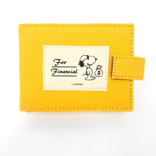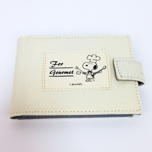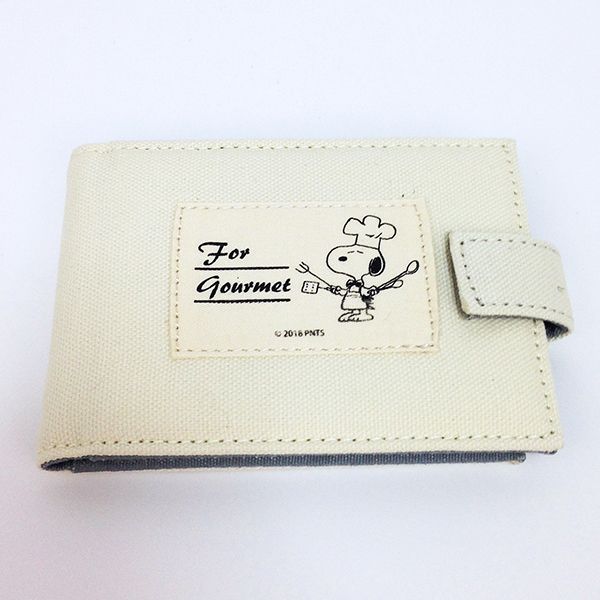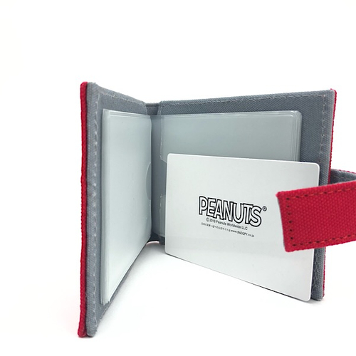 中を開くとカードホルダーがあります。ホックで留められるのもポイントですね。PEANUTSのロゴタグ付きです。
