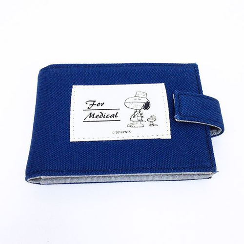 ドッグハウスの上のスヌーピーがキュートなカードケースです。シックなネイビーに、赤い屋根が目立っています。