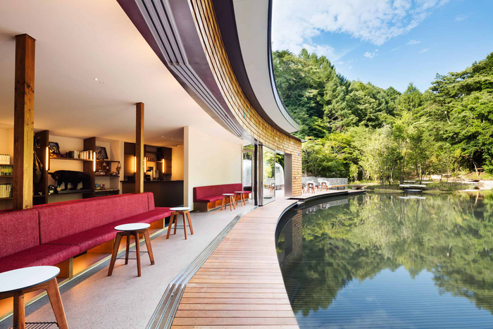 「居酒屋以上 旅未満 みんなでルーズに過ごすホテル」をコンセプトとする、若い世代のためのホテル。24時間利用可能なパブリックスペース「TAMARIBA(タマリバ)」がその象徴。軽井沢星野エリアの入り口に位置し、徒歩圏内でショッピングや温泉、食事が楽しめます。