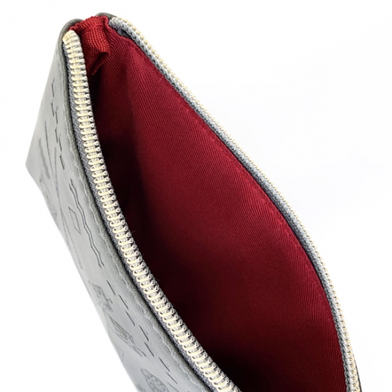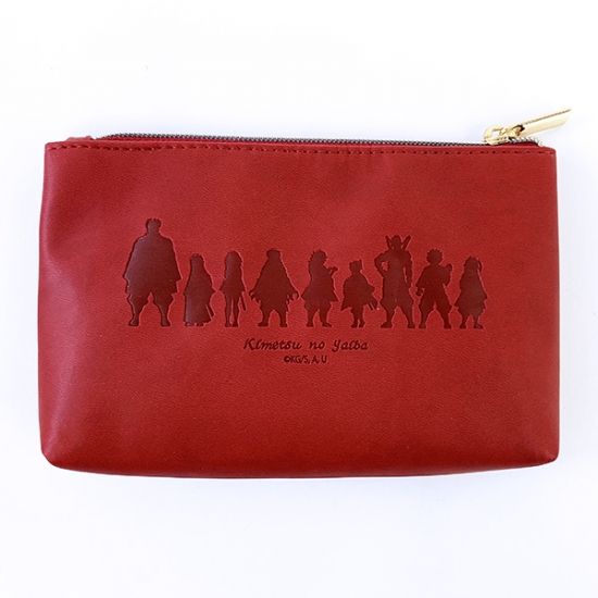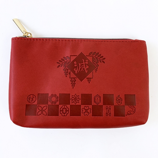 2つ目は、こちらのワインレッド色のレザー風ポーチです。柱の9人を連想させるモチーフが下部にデザインされていてとってもオシャレですよね!サイズは、11×17.3×3.5㎝ですよ。