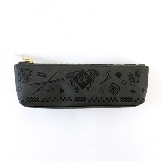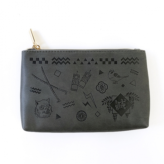 1つ目は、こちらのレザー風ポーチです。伊之助のトレードマークともいえる猪の顔や、炭治郎のピアス、善逸の鎹烏であるチュン太郎などなど鬼滅の刃が好きならば分かるイラストがたくさん描かれていますね。グレーの落ち着いた色味でデザインがまとまっているので使い勝手も良さそうです。サイズは、11×17.3×3.5㎝です。
