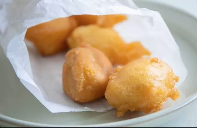 親族しか知らない秘伝の配合のいも天粉をまぶし、180度の高温の油でじっくりと揚げたさつまいもは、ほんのりと甘くてホクホクでアツアツ!