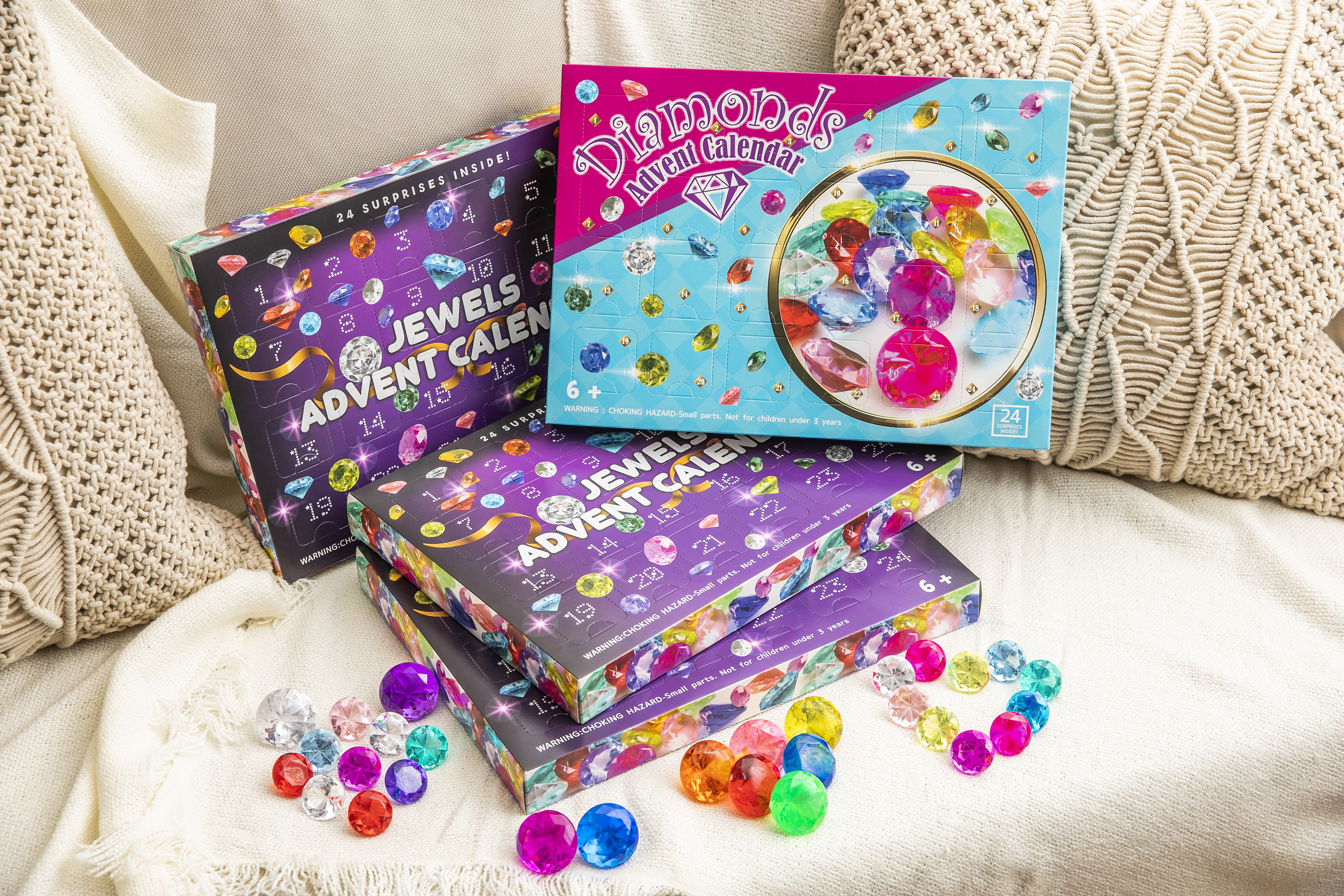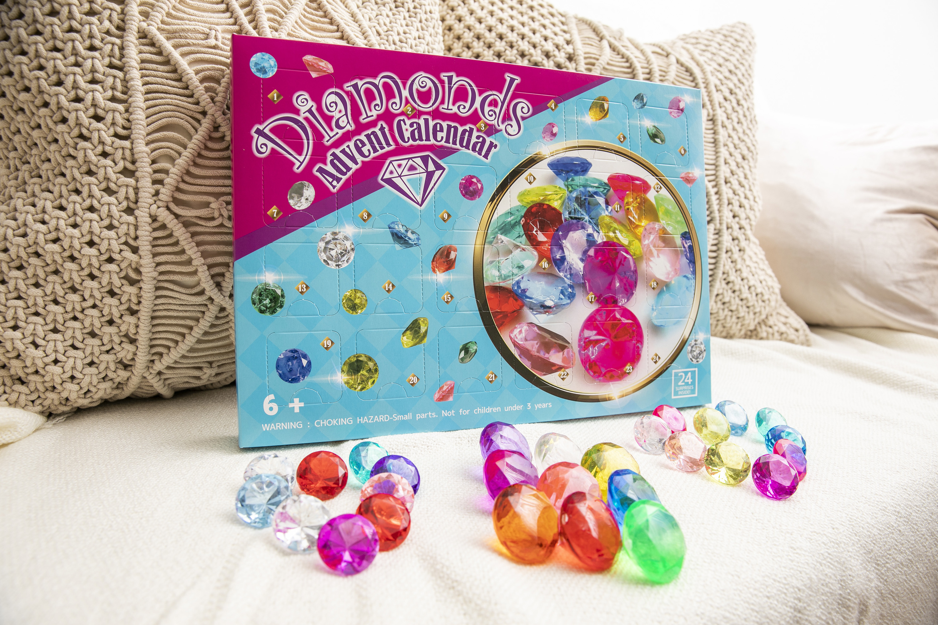 Foothill Gardens オリジナル アドベントカレンダーシリーズ第一弾の『Diamonds Advent Calendar』は24個の窓の中に、色や形、大きさも様々なキラキラのアクリル製宝石ストーンがランダムに入っていて、キラキラ宝石ストーンを集めながらイベントまでワクワク気分を盛り上げて行く最適なアイテム、従来のアドベントカレンダーの楽しみ方であるクリスマスまでのカウントダウンはもちろん、お誕生日などイベントまでのカウントダウン、毎日のお手伝いやお勉強の後のご褒美として等、使い方次第で一年を通して楽しむことが出来るギフトにも最適な品物です。
