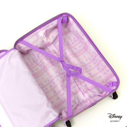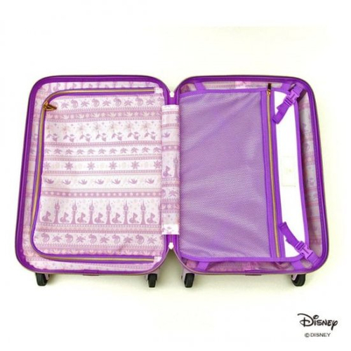 ご紹介するラインナップは2種類あって、こちらは「塔の上のラプンツェルカラー」ラプンツェルのドレスカラーであるパープルのグラデーションが見事なスーツケースです。素材は軽くて丈夫なPC(ポリカーボネート)とABS樹脂。軽いから長旅にも安心で、いろんなところに連れて行けます♡