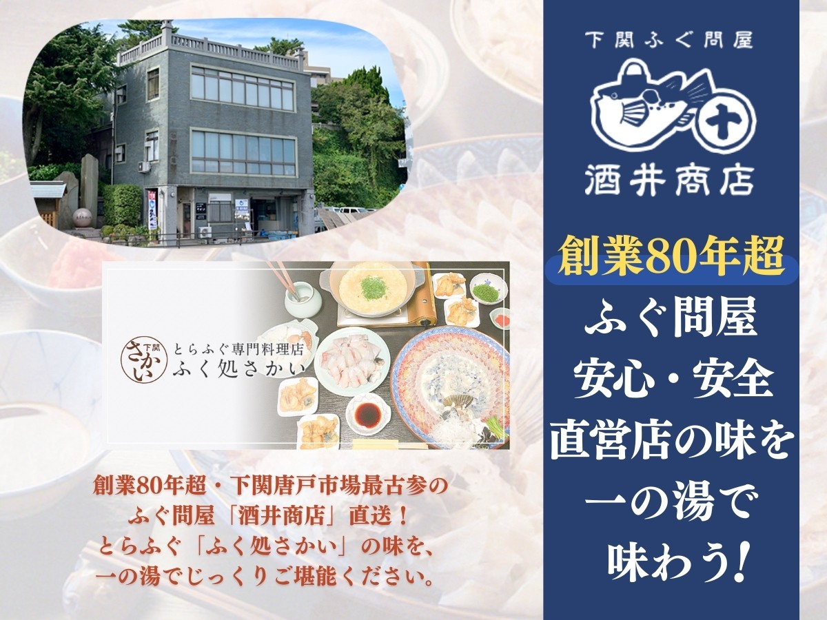 使用するふぐは、山口県下関の老舗「酒井商店」から直送された鮮度抜群のとらふぐ。創業80年以上の歴史を持ち、「ほんとうに良いものだけを提供する」という社是のもと、安心・安全な品質のふぐをリーズナブルな価格でご提供します。長年培われた目利きと加工技術によって仕上げられたふぐ刺しは、芸術品のような美しさと、旨味・歯ごたえのバランスが特長。また、酒井商店直営の人気店「ふく処さかい」で提供される味を、箱根の温泉宿で堪能できる特別な機会です。