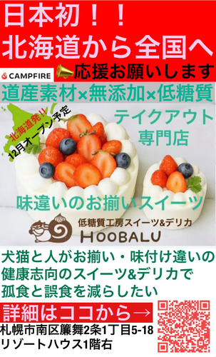 北海道苫小牧市で犬猫雑貨専門店「犬猫時間」を8年間経営する前田若子が、新たに札幌市南区簾舞にて「低糖質工房スイーツ&デリカ HOOBALU(フーバル)」を2025年12月上旬にオープンします。
