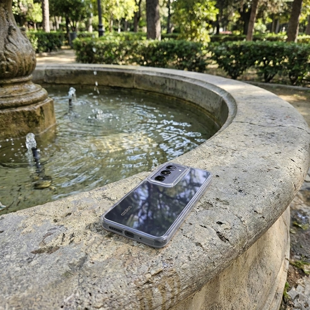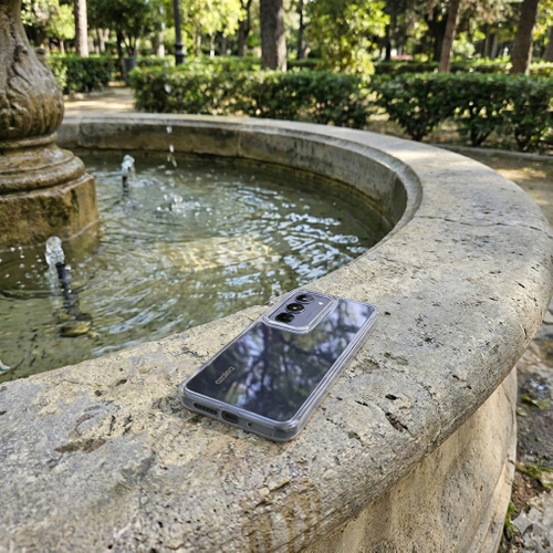 黄ばみにくいポリカーボネート素材を背面に使用したハイブリッドケースです。表面硬度が2Hでキズがつきにくく、端末本来の美しさを活かします。