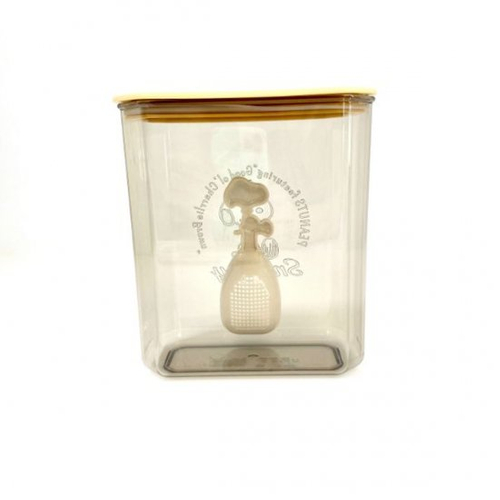 淡いブルーグリーンがキレイな、粉末保存ケースです。スッキリとシンプルなたたずまいですが、中央にはちゃんとスヌーピーが存在感を出しています。