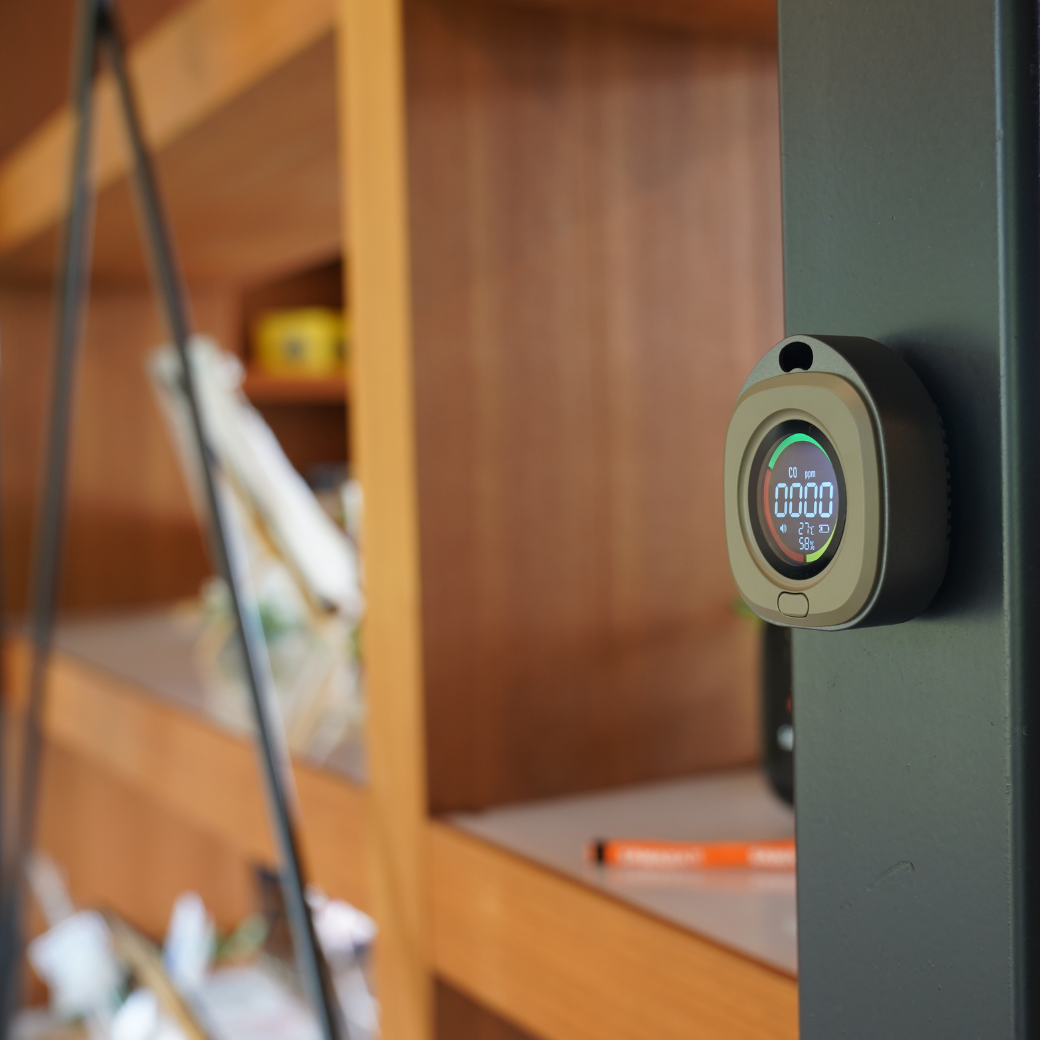 濃度に応じてディスプレイの色が変化し、危険値に達するとアラーム音で警告。