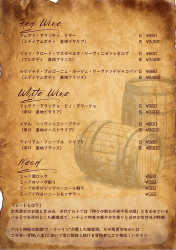 秋葉原駅から徒歩6分。植物が生い茂る入り口を抜けると、店内にはケルト音楽が流れ、異世界の酒場のような空間が広がります。友人と賑やかに過ごすのも、一人で料理やお酒を楽しむのも自由です。