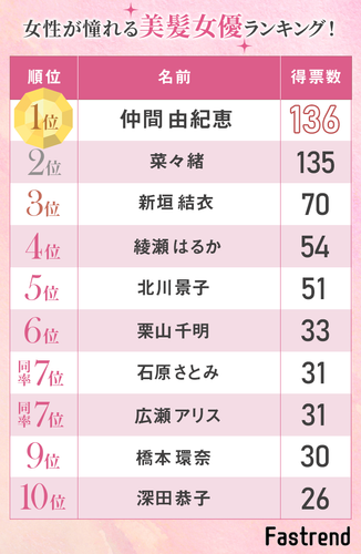 ファストレンド(運営会社:株式会社NEXER)は、「女性が憧れる美髪女優」に関するアンケートを実施し、結果をサイト内にて公開したので紹介します。