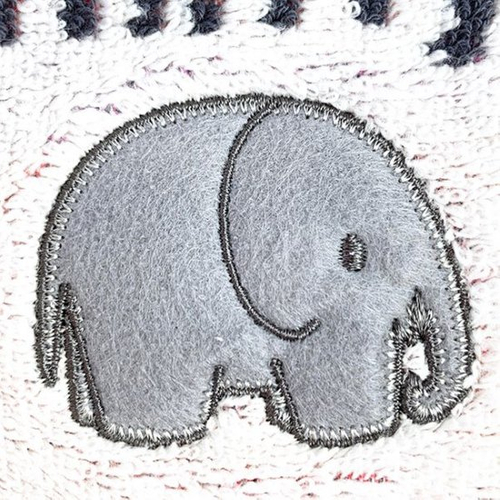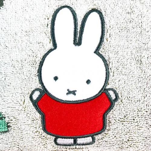 ミッフィーだけでなくアニマルたちも大集合していて、キュートなデザインです。しかも右下には、ゾウさんのアップリケ付き♪