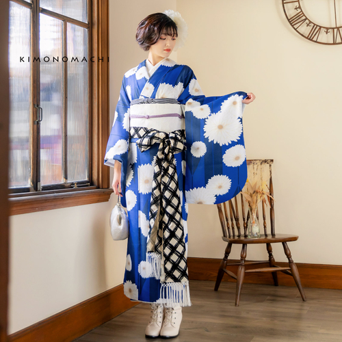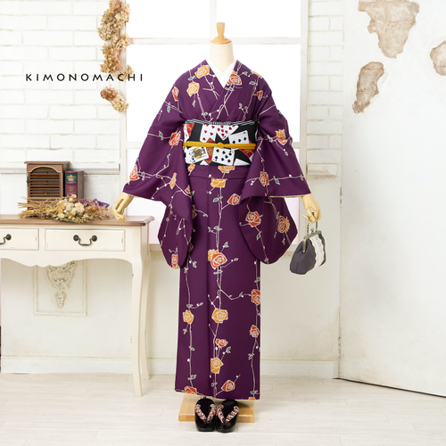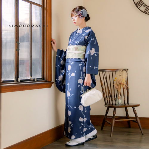 京都きもの町オリジナルブランド「KIMONOMACHI」の二尺袖着物は、袴と合わせて卒業式などの袴スタイルにおすすめです。また、身丈が通常の着物と同様の長さで作られているので、袴無しで、袖が長めなアンティーク風着物としても着ることができます。ポリエステル素材なので自宅の洗濯機で洗え、お手入れが楽ちんなのも魅力です。