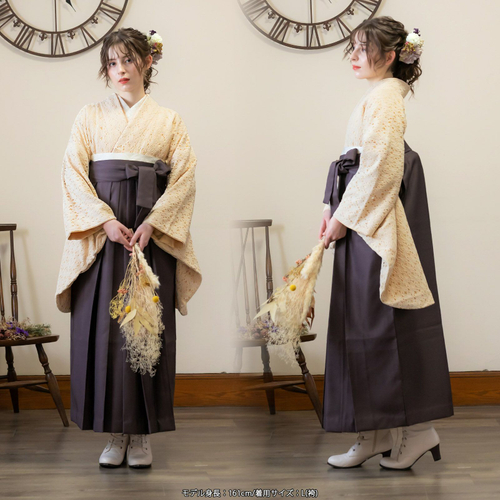 袴と合わせて、卒業式・謝恩会にぴったりの袴スタイルに。 普段着着物として、長めの袖でアンティーク風な着こなしに。