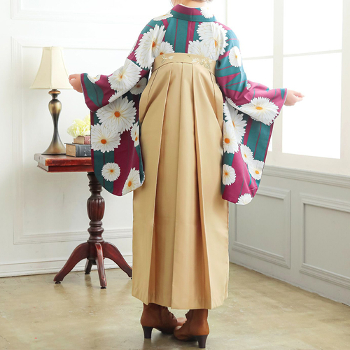 袴:茶色地、腰の部分に白の椿の刺繍