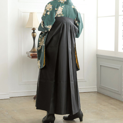 袴:黒地、腰の部分に白の椿の刺繍。