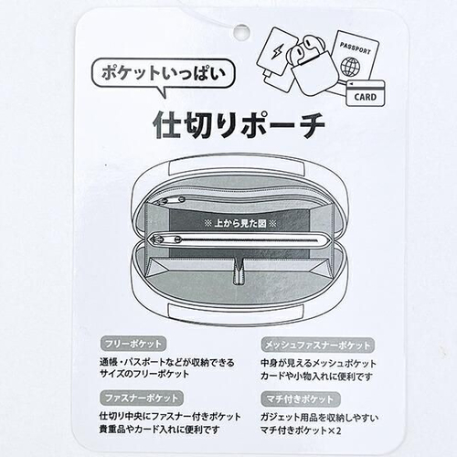 なんといっても仕切りポケットが大量なこのポーチ。通帳やパスポートなどあらゆるものをきれいにわけて収納できます。