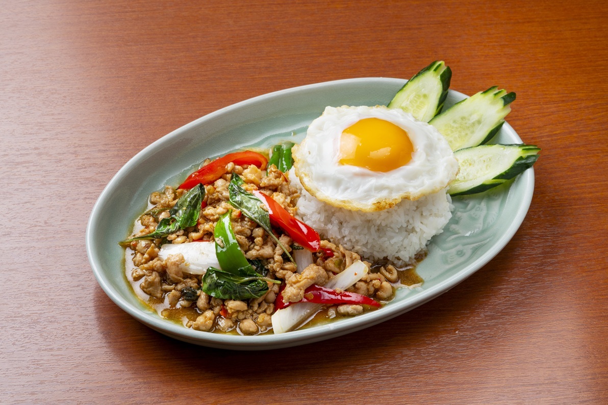 タイの屋台や食堂で人気No.1メニュー!ホーリーバジルというタイのハーブと鶏挽肉の相性がすばらしい一品。