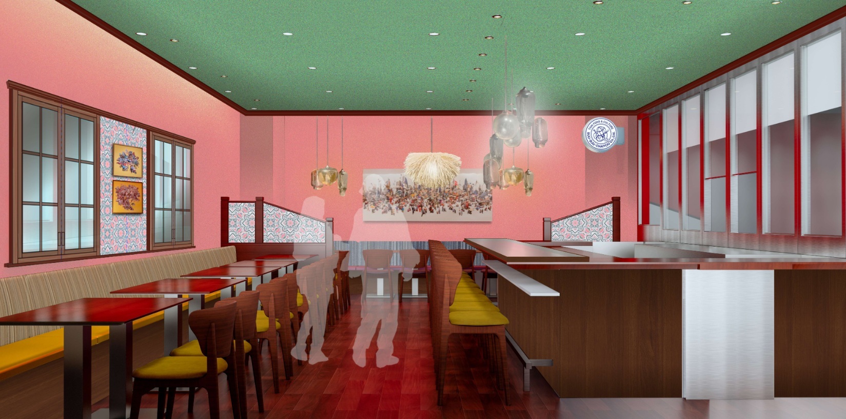 海外の各国と日本の交流点となる、日本の空の玄関口である施設に出店させていただくにあたり、創業店舗である「クルン・サイアム自由が丘店」の20世紀初頭のタイの洋館の雰囲気はそのままに、2025年の現代に感じるグローバリズム感を伝えるべく、現在に人気を博するアートや照明が入り混じるエッセンスを加えました。